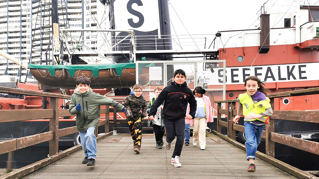 Wichtig zu wissen: Dieses Angebot ist partizipativ mit Dritt- und Viert-Klässler:innen einer Schul-AG aus der Gorck-Fock-Schule Bremerhaven entwickelt worden. Die Kinder haben selbst die Hafenobjekte ausgewählt, die Informationen recherchiert, die Texte geschrieben, und die Spiele mit Hilfe eines Designers gestaltet.