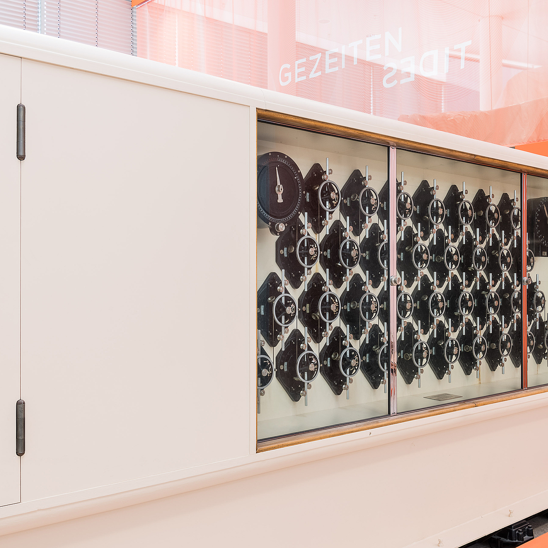 Einer von zwei Gezeitenrechnern in der Ausstellung. Dieses Modell stammt aus der DDR.