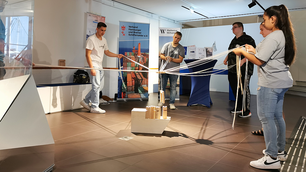 Beim Fragen bleibt es nicht, wer möchte kann anpacken. Die einzelnen Firmen bringen Simulatoren und Miniaturmodelle mit. Es können Mini-Container mit dem Kran versetzt oder Roboterarme bewegt werden - Konzentration und Geschick sind gefragt. Durch diese praktischen Erfahrungen bekommen Teilnehmer:innen schnell eine Idee, welcher Beruf am besten zu ihren Interessen, Talenten und Fähigkeiten passen könnte. Die vom Förderverein Deutsches Schiffahrtsmuseum e.V. und der Metropolregion Nordwest geförderte Veranstaltung trägt nicht nur zur Zukunftssicherung der maritimen Branche bei, sondern fördert die individuelle Entwicklung und Berufsfindung der jungen Teilnehmer:innen.